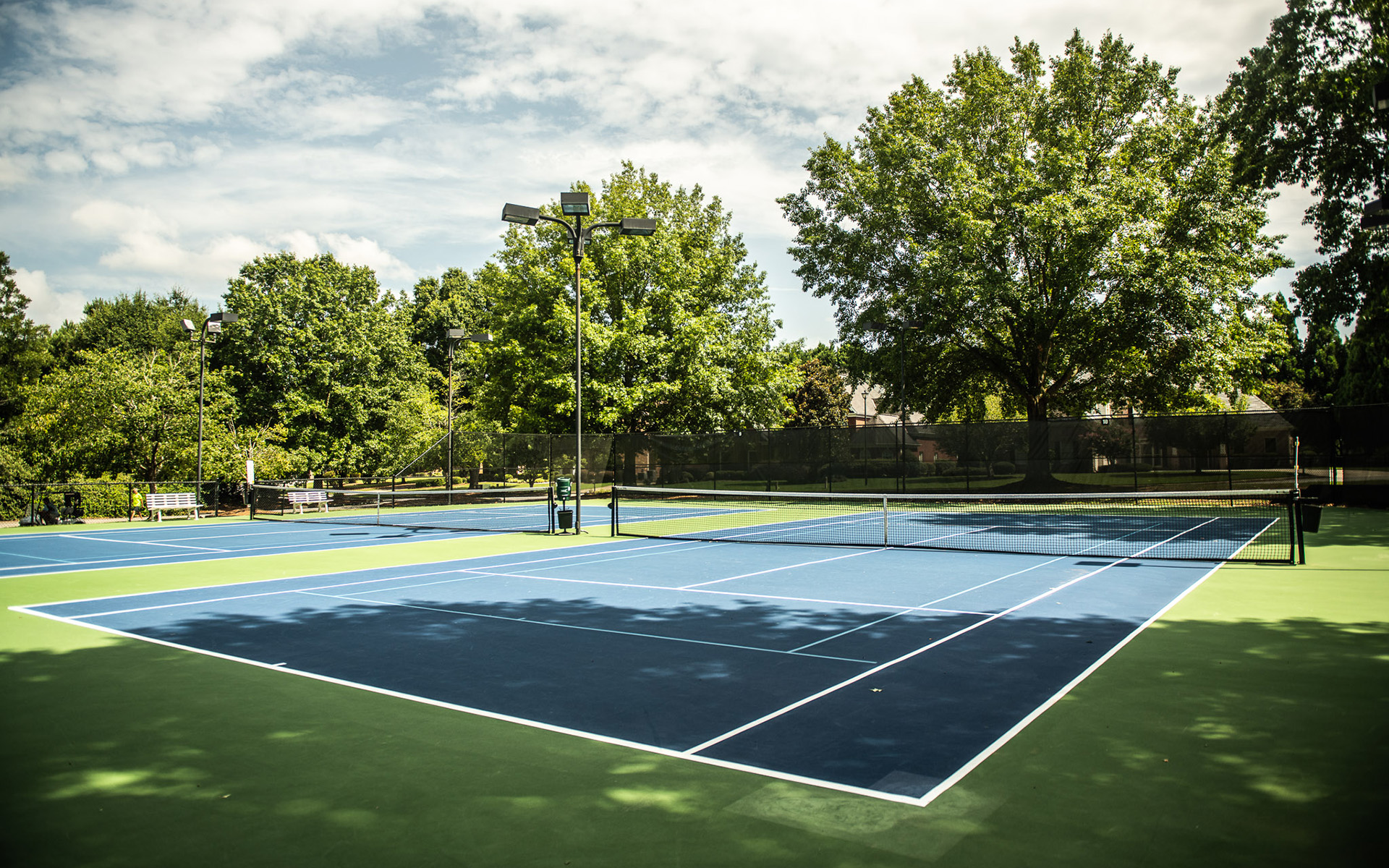 Eight Har-Tru and two clay courts, all lighted, give tennis players of all stripes ample opportunity to play and perfect their backhand. Our tennis program and tennis camps are offered year-round, and Members also have the chance to compete on a variety of teams, including teams for men, women, seniors and juniors, including ALTA, USTA and T2 competition. Younger Members can take advantage of our Junior Tennis Program and tennis camps, and players of all ages can take lessons.