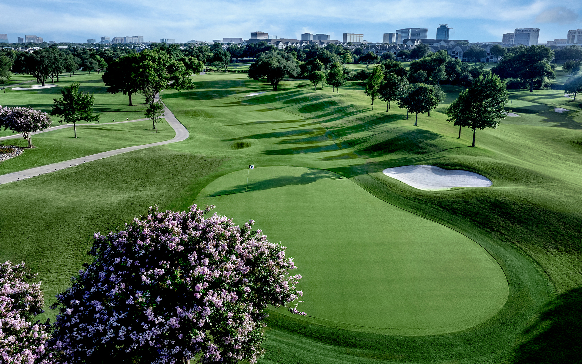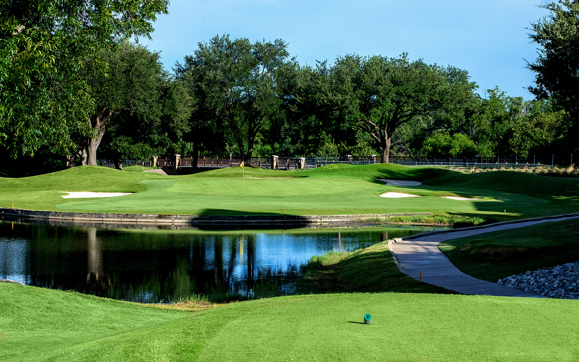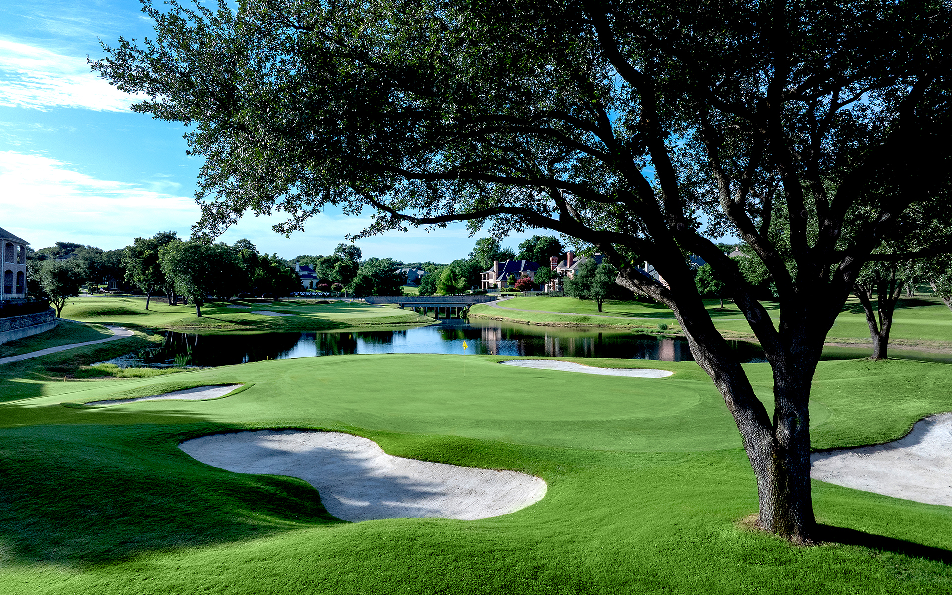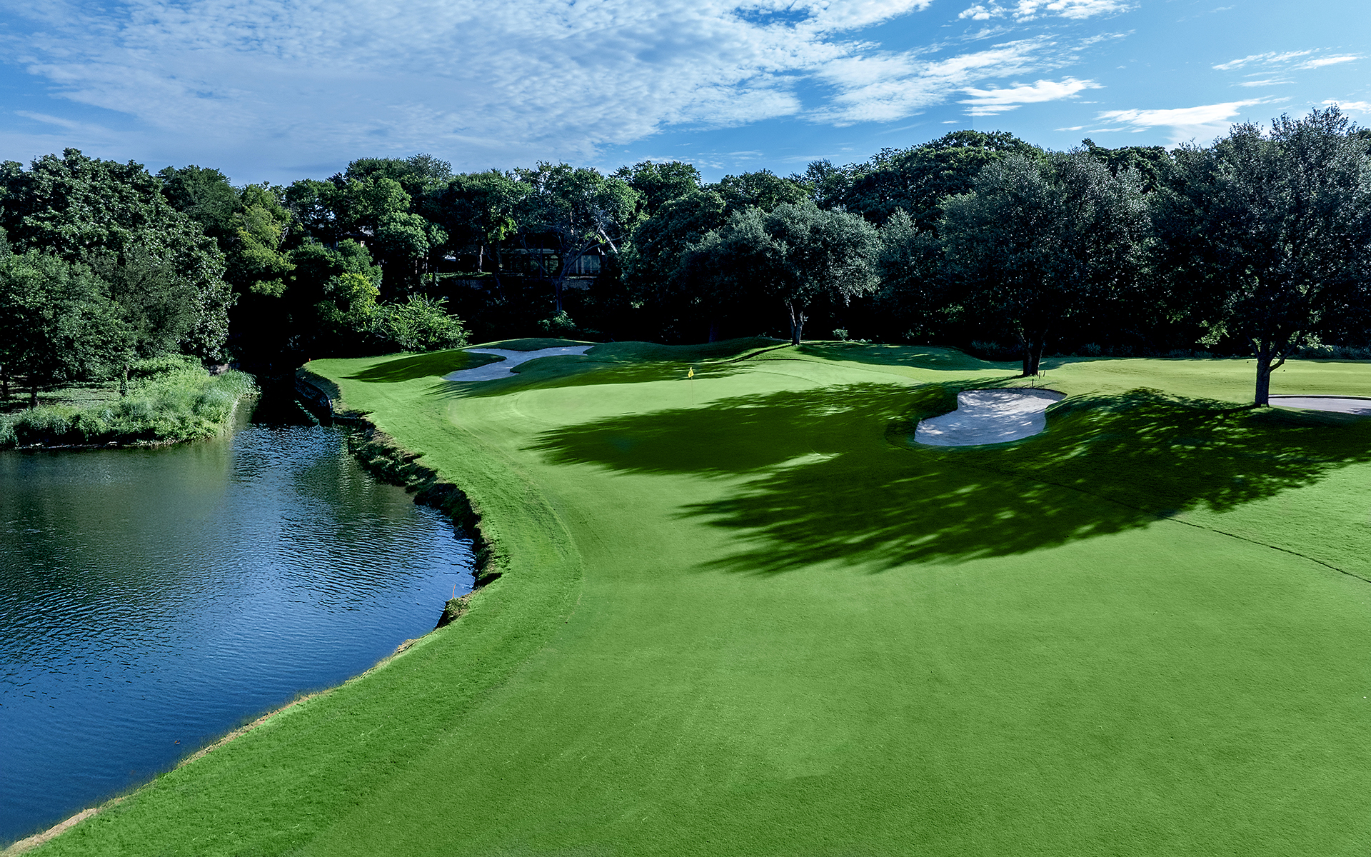 Dave Bennett of Austin designed the 18-hole championship Hills Course. This course offers members one of the most exciting golfing challenges today. The course encompasses rolling hills, crystal waterscapes, and a profusion of natural foliage.